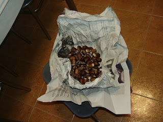 Gaztainaldia bete betean gaude. Joan zan astean ibili zan hegoaize zakarrak zuhaitzetako ale guziak lurrera bota zituen eta jendea erruz ibili da aste guzian zear gaztainak hartzen. Gu gaur goizean egin dugu azken txangoa gaztaindegira. Aurtengo uzta oparoa izan da eta ale ugari bildu ditugu etxean. Gaztainak erabiltzeko errezeta berriren bat bilatzen hasi naiz eta zerbait interesgarria opatzen badut hemen txintxilikatuko dut. Dena den gu beti ohikoak diren bi eratara jaten ditugu gaztainak, hasiera batetan, oraindik fresko xamar daudenean egosi egiten ditugu kazula batetan urarekin eta gatz pixka batekin. Gero erre egiten ditugu, oraindik nunbait gordeta daukagu danbolina, baina aspaldi hontan sukaldeko labe elektrikoan egiten ditugu