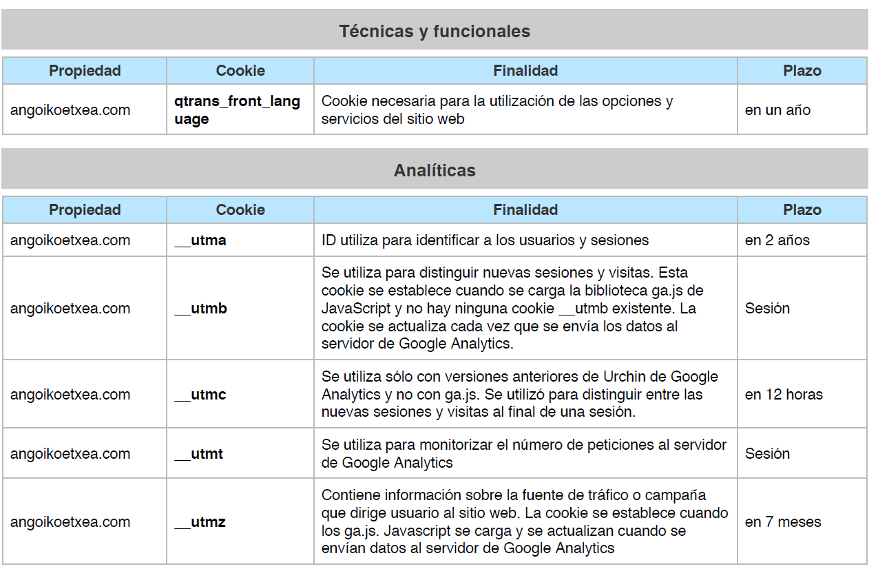 COOKIES UTILIZADAS EN ESTE SITIO WEB
